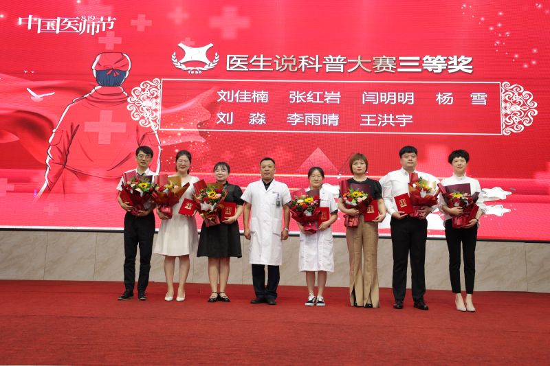 在“醫(yī)生說(shuō)科普大賽”上,29名醫(yī)生以專業(yè)嚴(yán)謹(jǐn)?shù)尼t(yī)學(xué)態(tài)度、時(shí)尚多元的創(chuàng)意思維,通俗易懂的語(yǔ)言,獻(xiàn)上一場(chǎng)精彩的健康科普盛宴,充分展現(xiàn)了新時(shí)代青年醫(yī)生的精神風(fēng)貌與職業(yè)風(fēng)采。經(jīng)過(guò)精彩演講、PPT演示、評(píng)委公正打分,最后賽事結(jié)果為,祖有恒榮獲一等獎(jiǎng);胡宏影、李凌子、姜海彬榮獲二等獎(jiǎng);劉佳楠、張紅巖、楊雪、閆明明、王洪宇、劉淼、李雨晴榮獲三等獎(jiǎng);鄭天翔、張曉彤、徐長(zhǎng)金、張一涵、劉曉菲、紀(jì)曉晴、于洋、楊立娜、夏海靜、費(fèi)瀟然榮獲優(yōu)秀獎(jiǎng)。檢驗(yàn)科、電診科榮獲優(yōu)秀組織獎(jiǎng)。在振奮人心的樂(lè)曲中,院領(lǐng)導(dǎo)為“醫(yī)生說(shuō)科普大賽”的獲獎(jiǎng)?wù)哌M(jìn)行了頒獎(jiǎng)。